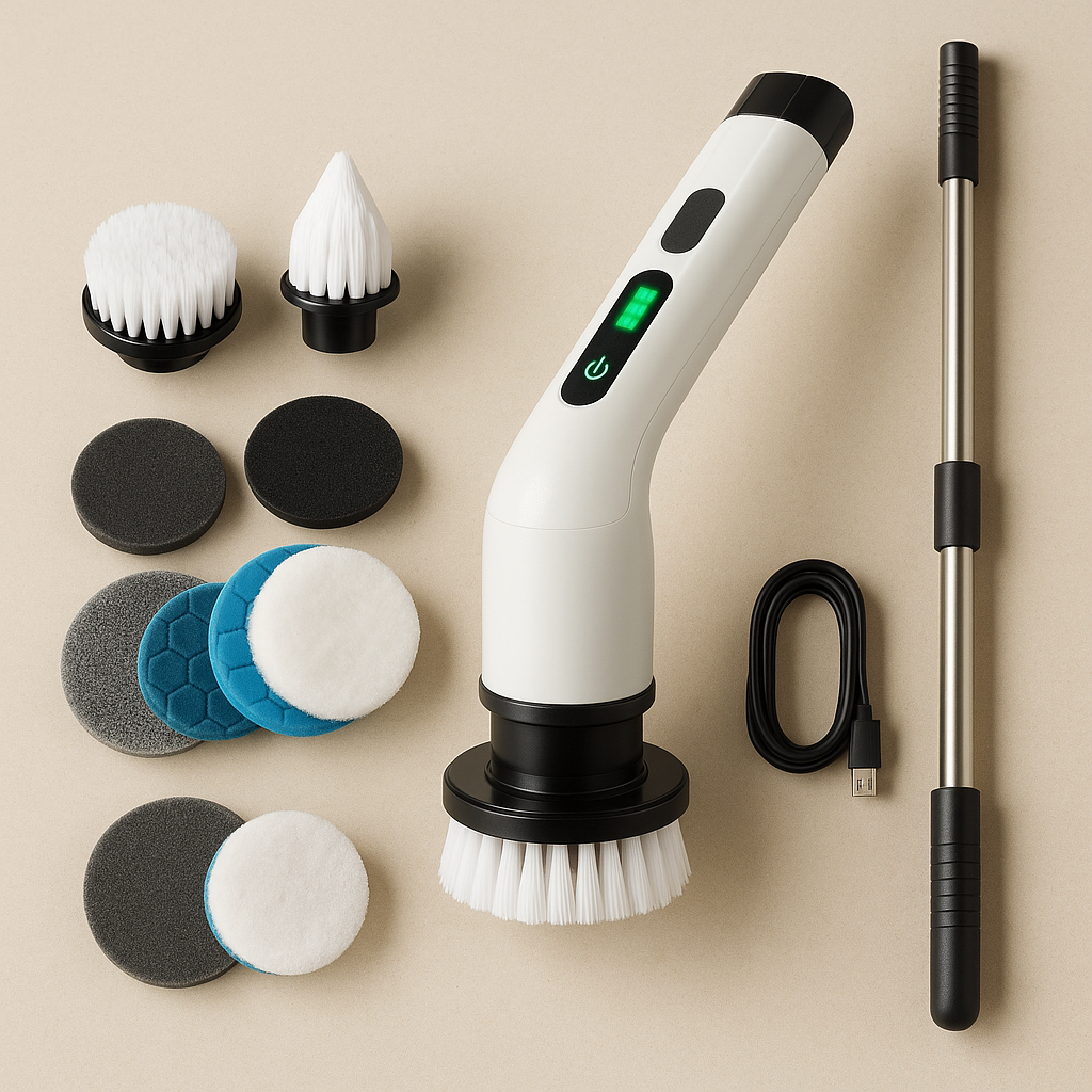 A Escova de Limpeza Ajustável foi feita para simplificar sua rotina e deixar sua casa impecável com o mínimo de esforço. Com design ergonômico sem fio e função recarregável, ela alcança todos os cantos com total liberdade de movimento.